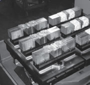 | Located part with dowel pins, bolted part to tombstone fixture. Indicated part to zero datum point. | Mounts parts to fixture plate while machining other parts. Mount fixture plate to tombstone using Ball Lock® Shanks. No indicating required because system provides +0.0005 (±0.013mm) repeatability. |