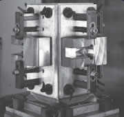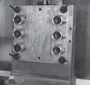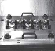 | Fixture plate located with dowel pins bolted to machine base. Fixture plate and parts indicated. | Parts pre-mounted on fixture plate, which is then mounted to machine base using Ball Lock® Shanks. No need to indicate. |