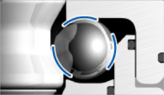 Free movement of the bearing balls reduces friction.